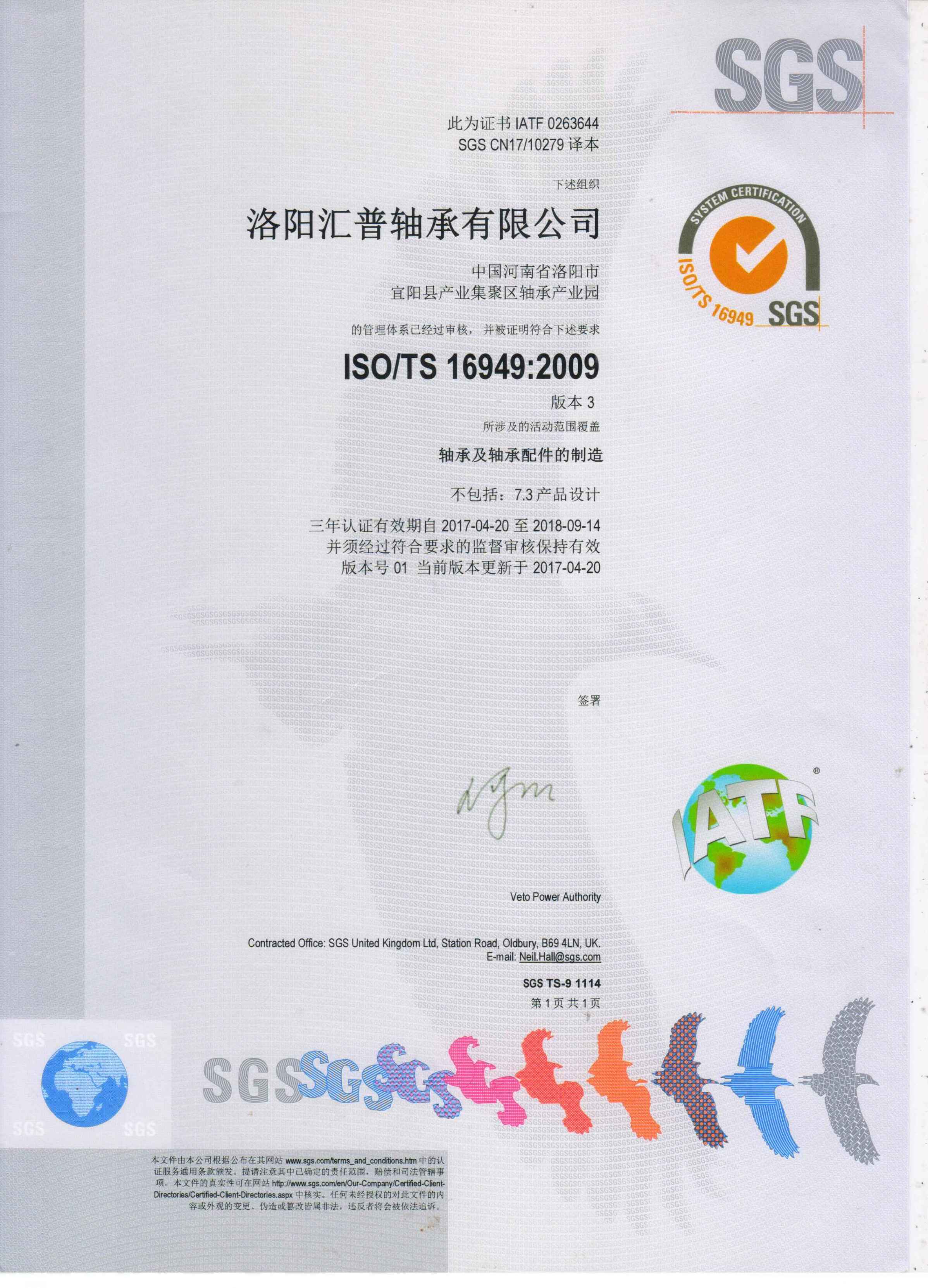 2017年4月匯普軸承順利通過TS16949質(zhì)量體系認(rèn)證